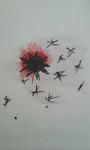 Mais l’art-thérapie a aussi un autre bénéfice. A différents âges, il a été constaté comme la présence de ce virus, agent pathogène puissant, incontrôlable et envahissant, associé aux décisions qu’il a entraînées (limitation des déplacements, port obligatoire du masque etc) ont provoqué des réactions exacerbées quant aux contraintes subies par un agent externe. Ainsi, amplifiées par les conditions de vie en communauté dans un espace restreint, les consultations pour des enfants, jeunes adultes et adultes ont montré toute la complexité de cette relation à une autorité jugée arbitraire. Associée à la peur, les productions expriment la façon dont chaque corps est alors affecté, les facteurs de perturbation en jeu et la manière dont chacun les perçoit et les vit. Pour chaque terrain individuel particulièrement sensible à cette forme de violence externe devenue interne, le besoin d’y échapper renversait la donne. L ‘enfant devenait plus bourreau que victime en tyrannisant ses proches: caprices, réaction de colère, rupture brutale du lien avec rejet etc. . La réalisation d’une peinture ou d’un dessin lui a souvent offert l’occasion de démontrer sa possibilité de dominer, de montrer sa toute-puissance tout en ménageant la sécurité interne dont tout corps a besoin. Ainsi, plusieurs familles dont le vécu s’était nettement dégradé durant cette période, ont pu être soulagées de la pression des affects enclenchés par la situation. Là encore, l’art-thérapie a permis non seulement d’exprimer mais de comprendre ce qui était vécu. Un sens devenu nécessaire pour rétablir une organisation des relations familiales beaucoup plus tranquilles.